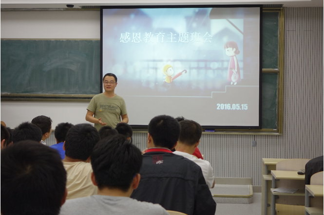 为响应学校心理健康教育与咨询中心的号召,进一步贯彻实施《中共中央国务院关于进一步加强和改进大学生思想政治教育的意见》,培养大学生良好的心理品质和自尊、自爱、自律、自强的优良品格,我班在5月17日晚开展了感恩教育主题班会,此次班会的目的,是引导同学们真正理解感恩的含义,怀着一颗感恩的心去看待社会,孝敬父母,尊敬老师,关心同学,学会感激、感谢、感恩,把感恩意识内化为一种责任,外化为一种行动,学会知恩、报恩、施恩。
