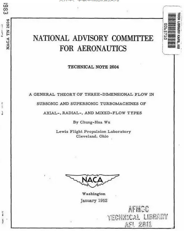 吴仲华提出三元流通用理论的NACA 2604技术报告