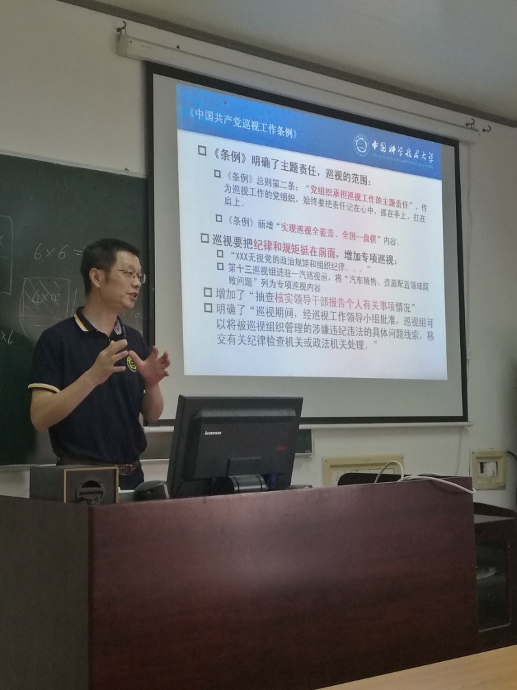 2017年7月26日下午,热科学和能源工程系全体教工党员在力学一楼412教室召开了巡视整改专题组织生活会,工程科学学院党委书记刘明侯参加了会议,并为全系党员上了生动的专题党课。会议由流体和传热两个支部书记分别主持。