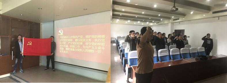 会议开始,大家整齐列队,面向党旗肃立。在赵志晔的带领下,大家举起右拳,高声宣读入党誓词。“我志愿加入中国共产党,拥护党的纲领,遵守党的章程……”铿锵有力的宣誓声,响彻239会议室。