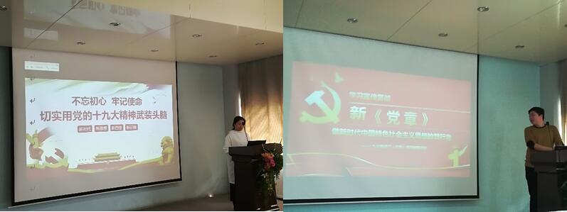 赵志晔又带领大家学习了新《党章》。十九大会议表决通过将习近平新时代中国特色社会主义思想写入党章。习近平新时代中国特色社会主义思想是党的十九大的灵魂,是马克思主义中国化的新飞跃,是民族精神和时代精神之精华,是照亮中华民族伟大复兴前程、指引我们党夺取“四个伟大”新胜利的思想灯塔。