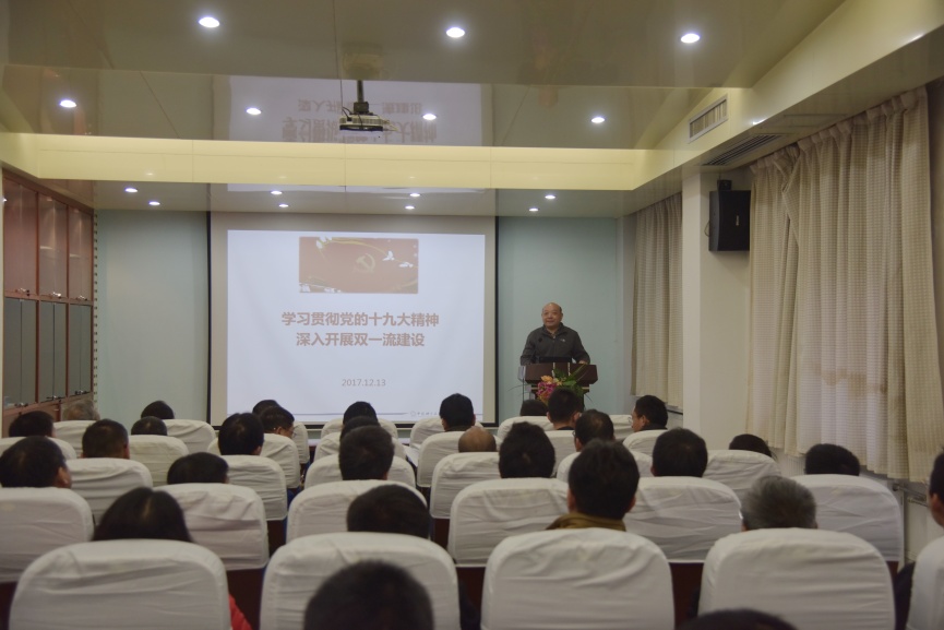 陆夕云还带领大家学习了党的十九大报告中在科技创新方面提出了一系列新要求和新部署,需要我们科技工作者认真领会,积极贯彻落实。要优先发展教育事业,全面贯彻党的教育方针,落实立德树人根本任务,发展素质教育,推进教育公平,加快一流大学和一流学科建设。他要求各位老师要德才兼备、又红又专,必须做到“四个相统一”。