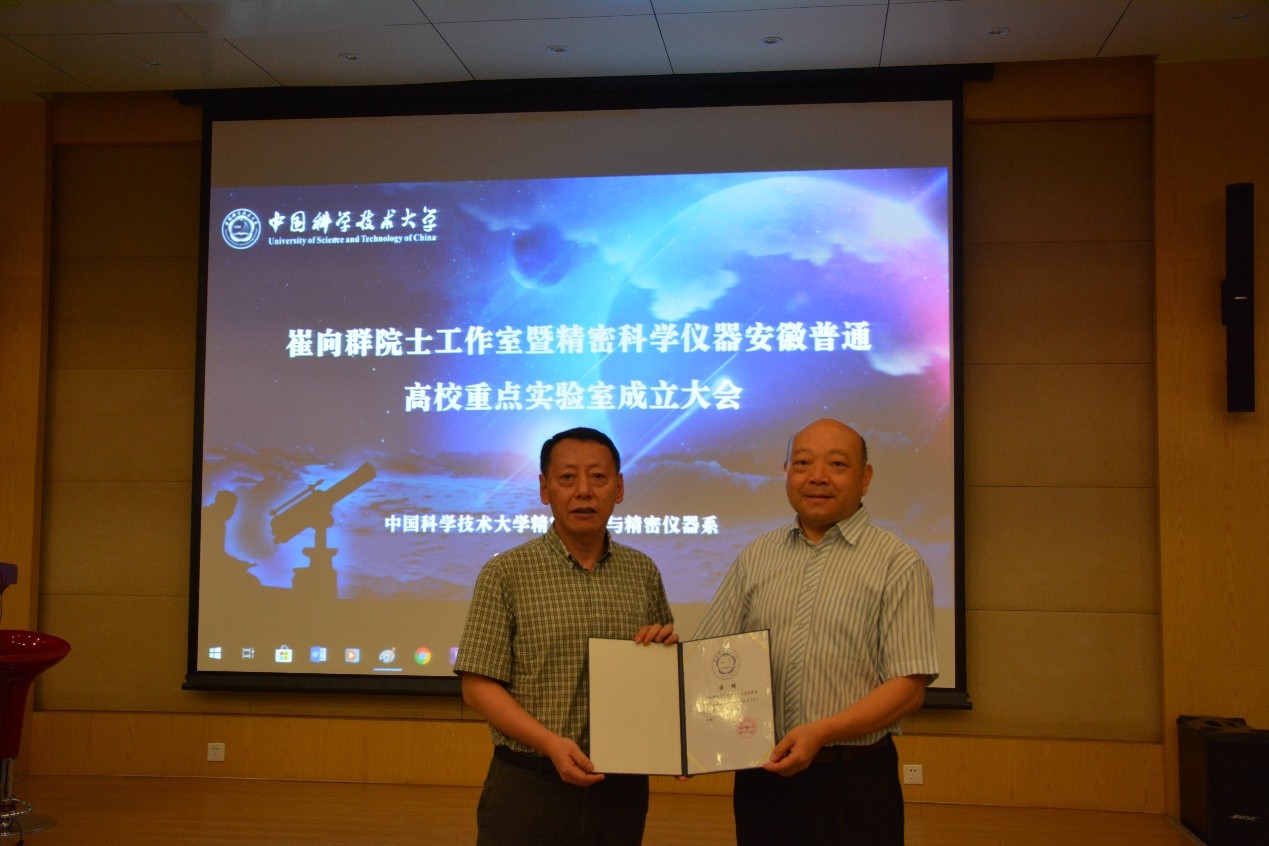 6月8号上午,由必威betway西汉姆网页版 精密机械与精密仪器系主办的“崔向群院士工作室暨精密科学仪器安徽普通高校重点实验室成立大会”在必威betway西汉姆网页版 西区特种楼报告厅举行。崔向群院士、伍小平院士、必威betway西汉姆网页版 党委常委人力资源部部长褚家如教授、必威betway西汉姆网页版 工程科学学院院长陆夕云教授、党委书记刘明候教授、中科院合肥智能机械研究所孔德义教授、中科院安徽光学精密机械研究所副所长谢品华教授、合肥工业大学仪器科学与光电工程学院院长于连栋教授、东南大学仪器科学与工程学院院长宋爱国教授、必威betway西汉姆网页版 近代力学系何陵辉教授、张青川教授及师生代表100余人参加了会议。