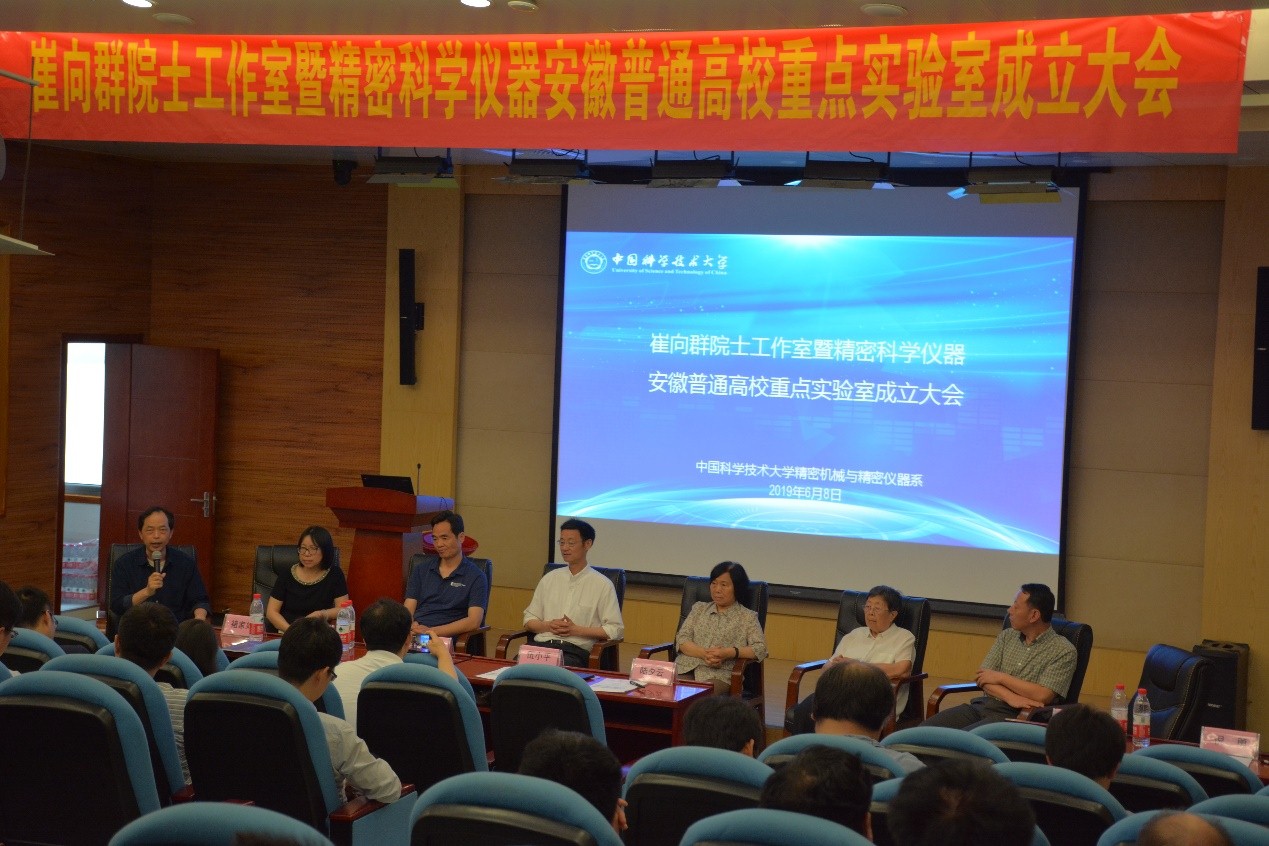 首先,褚家如教授向崔向群院士工作室暨精密科学仪器安徽普通高校重点实验室成立表示热烈祝贺,他指出,崔向群院士工作室成立对推动仪器学科发展意义重大,精密科学仪器安徽普通高校重点实验室作为我校仪器学科作为依托单位建立的第一个省部级的重点科研机构,对仪器学科平台建设奠定了良好的基础,希望重点实验室可以面向国家急需,协同创新,开拓进取,谱写更加辉煌的篇章。工程科学院院长陆夕云教授代表工程科学学院对崔向群院士工作室及重点实验室的建立表示祝贺,并对学校以及兄弟院校的帮忙表示感谢,希望重点实验室的建设可以体现科大“所系”结合的特点,引领“新工科”的进一步发展。