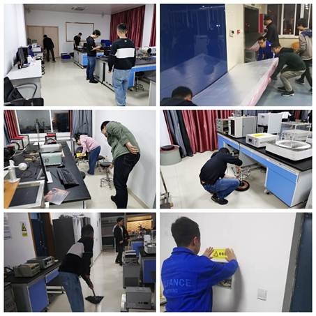 说干就干,大部队兵分多路,分别负责不同的任务。负责粘贴警示标志的同志们拿着警示标志,逐个排查实验室中需要大家小心使用的插排亦或是电路开关,细心地将黄色的标识粘贴在醒目的位置。负责环境整理与打扫的同志们则针对实验室内外一些摆放不合理的物品,将其归置,大的东西大家齐上阵,真正地展现了团结就是力量。物品整理后,同志们拿起扫帚拖把开始清理地面的杂物,使地面也焕然一新。由于部分座椅的螺丝已经出现松动甚至脱落,继续使用可能会存在一定的安全隐患。于是大家逐个检查实验室中的座椅,对存在问题的进行了维修和置换。松动的螺丝紧固好,缺失的螺丝补上,无法维修的座椅则进行淘汰置换。经过大家的齐心协力,进一步排除了实验室的安全隐患,改善了实验室的环境卫生。
