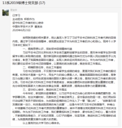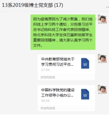 通过这次学习,支部成员深刻学习习近平总书记重要讲话精神,结合自己实际情况,发表了自己的心得体会。作为当代博士生,脚踏实地立足科研,有一份热发一份光,为国家疫情以及建设中做出自己贡献。