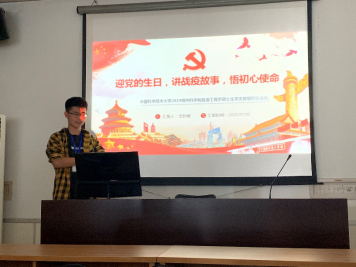 通过此次“迎党的生日,讲战疫故事,悟初心使命”专题组织生活会,大家更能明白身为一个研究生党员,时代赋予了我们什么样的使命,我们应该担起什么样的责任。同时作为科大学子,大家也更久坚定科教报国的使命与决心。