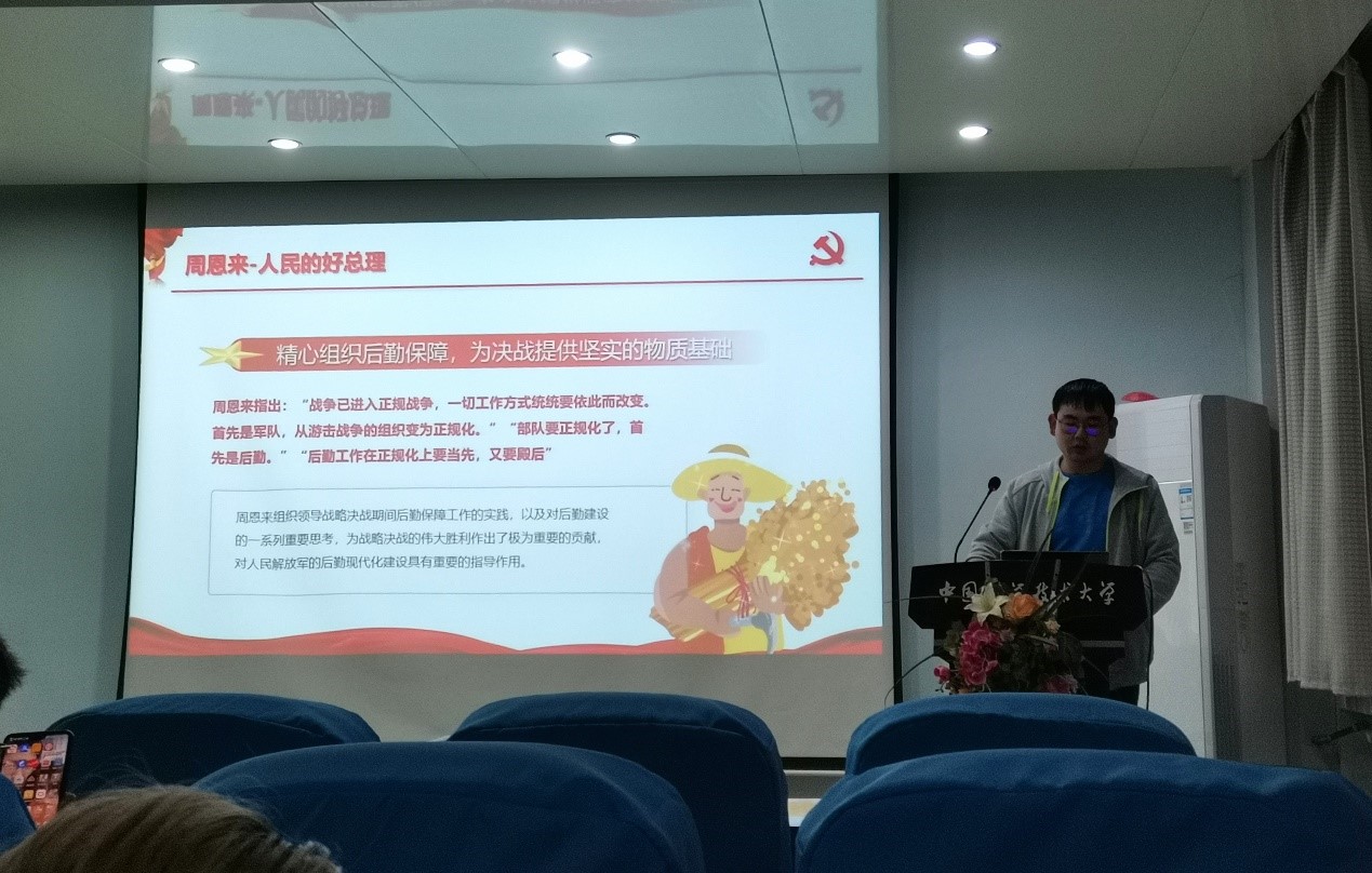 随后胡林向大家介绍了周恩来、刘胡兰、黄河清三位优秀共产党员在解放战争时期的主要经历与事迹。周恩来同志在此期间,深刻洞察战争全局,确立战略决战思想;善于着眼战争全局,选定首要突击方向;密切关注战场变化,不断扩大决战规模;创造解决敌军新方式,加快战争进程;精心组织后勤保障,为决战提供坚实的物质基础,展现了共产党员领导人的优秀战略思想。1947年,刘胡兰同志15岁,因叛徒告密而被捕,从容就义。正如邓小平同志题词:刘胡兰的高贵品质,她的精神面貌,永远是中国青年和少年学习的榜样。黄河清同志组织领导农民武装暴动,创立地方革命武装;多次担任基层党组织重要职务,为建立红色政权呕心沥血,直至献出了自己的生命,充分表现了共产党人视死如归的崇高革命气节。
