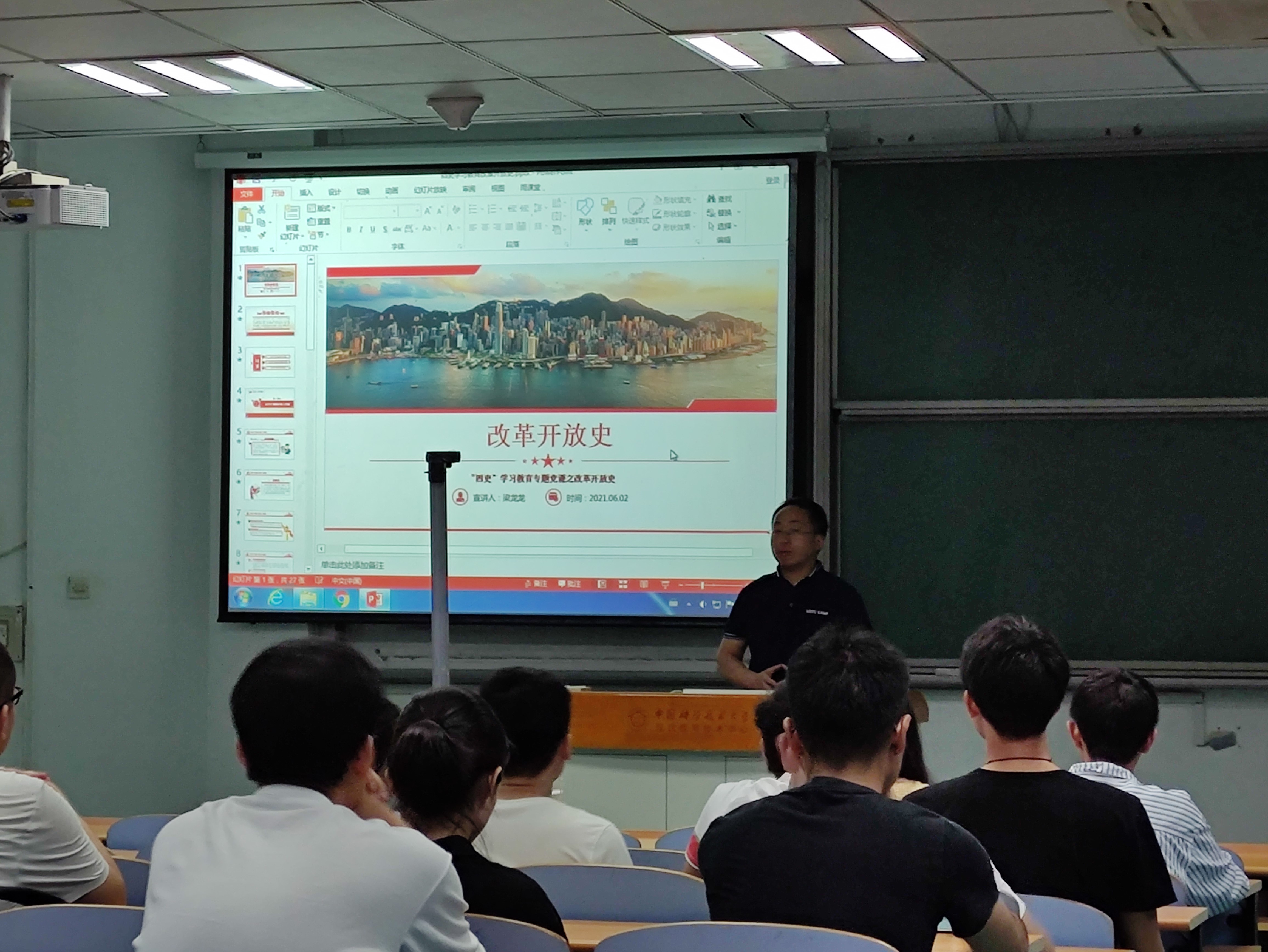 梁龙龙作为主讲人介绍了“改革开放”的历史背景、影响和意义,并展望了我们“扩大开放,深化改革”形势下充满希望的未来。讲解结束后,同学们进行了热烈的讨论,更加深入地探讨了“改革开放”这一学习主题,这为大家学习党和国家的历史提供了非常有益的帮助。