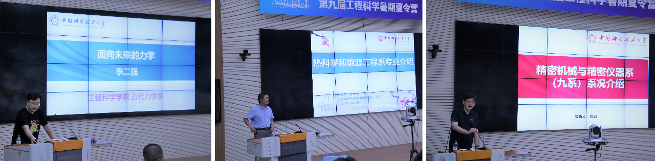 其后,近代力学系主任李二强教授、热科学和能源工程系主任程文龙教授、精密机械与精密仪器系主任刘诚教授分别为同学们带来精彩纷呈的报告,对我院各系的系况以及历史沿革、专业建设、前沿科技、人才培养等做了详尽的介绍。