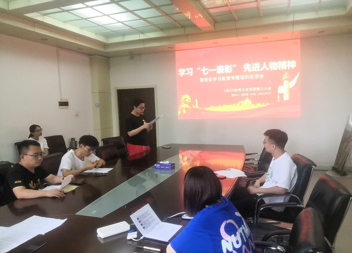 为扎实开展党史学习教育,引导广大党员增强“四个意识”,坚定“四个自信”,做到“两个维护”,2020级博士生党支部于7月底开展党史学习教育专题组织生活会。会前,支部要求党员认真学习习近平总书记在党史学习教育大会上的重要讲话,以及《中国共产党简史》等学习材料,并在党支部委员,党支部委员和党员之间开展了谈话谈心,互相交流提高。