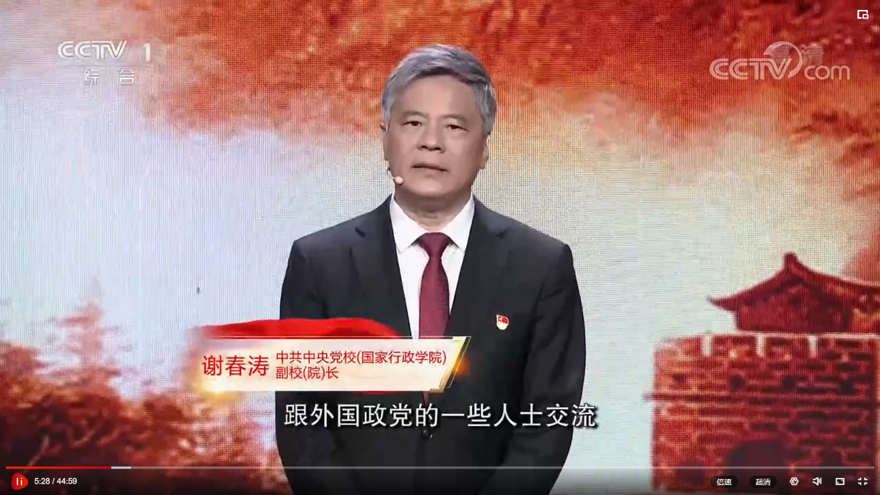 在《党课开讲啦》第一期节目《党的光辉历程》中,中共中央党校(国家行政学院)副校(院)长谢春涛带领我们循着历史发展的轨迹,回顾百年奋斗的光辉历程,共同来找寻中国共产党的成功奥秘。