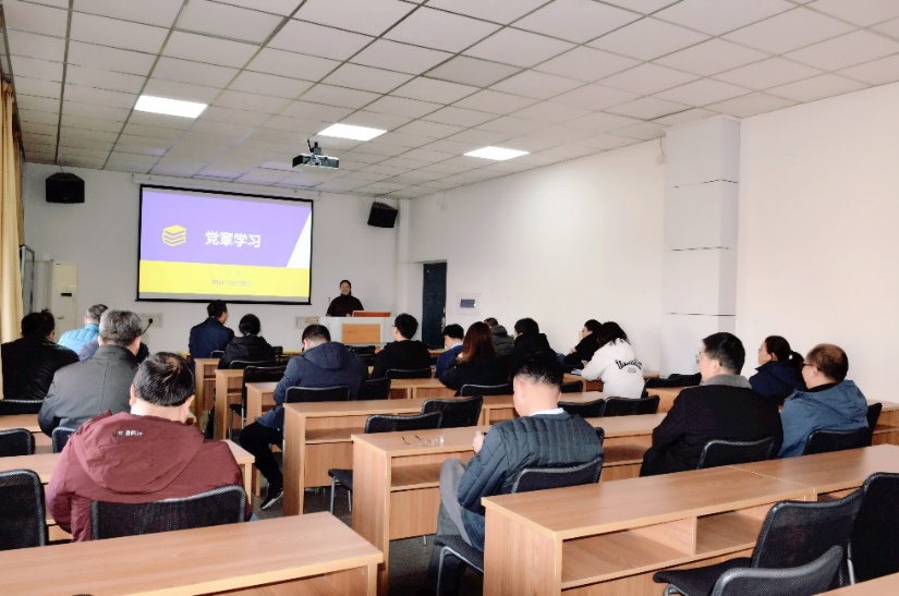 院党委副书记牟玲做党章学习交流发言。牟玲重点讲解了党章中党员条件、党的性质、指导思想、党的纲领、党的宗旨五方面内容,强调作为一名党员,要以党章为规矩,以党章为镜鉴,以坚强党性作为立身、立业、立言、立德的基石,希望大家把学习党章变成一种习惯,对照党章规范自己的言行,让党章时刻铭记于心,不忘初心、践行誓词、牢记使命。