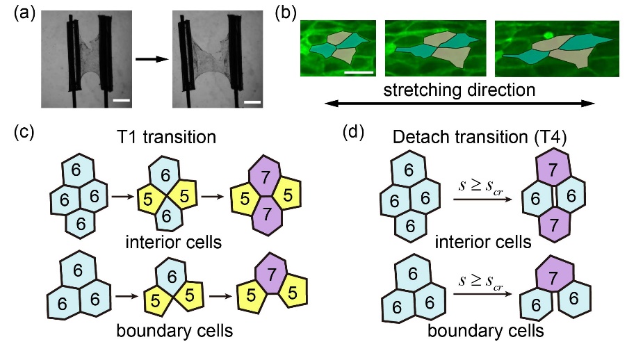 尽管上皮组织可以通过细胞分裂、重组、凋亡等过程去耗散应力以保证上皮组织的内稳态,但当细胞间粘附受损或受到过度拉伸时,上皮组织仍可能发生破坏和断裂。例如,机械通气作为急性呼吸窘迫综合征的一种常用治疗手段,常常会由于对肺泡的过度拉伸而造成急性肺损伤;粘附蛋白和肌动蛋白细胞骨架调控因子有缺陷的患者需要面临比平常人更加脆弱和容易受损的上皮组织屏障功能;甚至一些简单生物体(例如丝盘虫)的自身运动就可以导致其上皮组织发生断裂。尽管上皮组织的机械性能是其功能的重要组成部分,但是上皮组织在机械力作用下的断裂失效机制还不清楚,而且目前也缺乏可以描述上皮组织断裂破坏的理论模型。