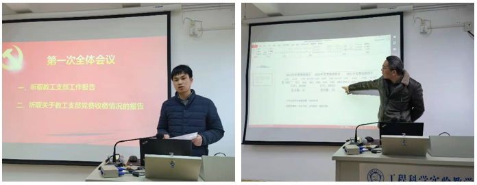 会议第一项议程为上届支部工作汇报和党费收缴情况汇报。上届支部书记叶回春同志首先代表上届支部委员会做工作汇报。他回顾了支部自2019年以来开展的工作,总结了过去三年支部党员、支委会的党务工作情况,同时指出了工作中存在的问题。组织委员许旻同志汇报了党费的收缴及使用情况。