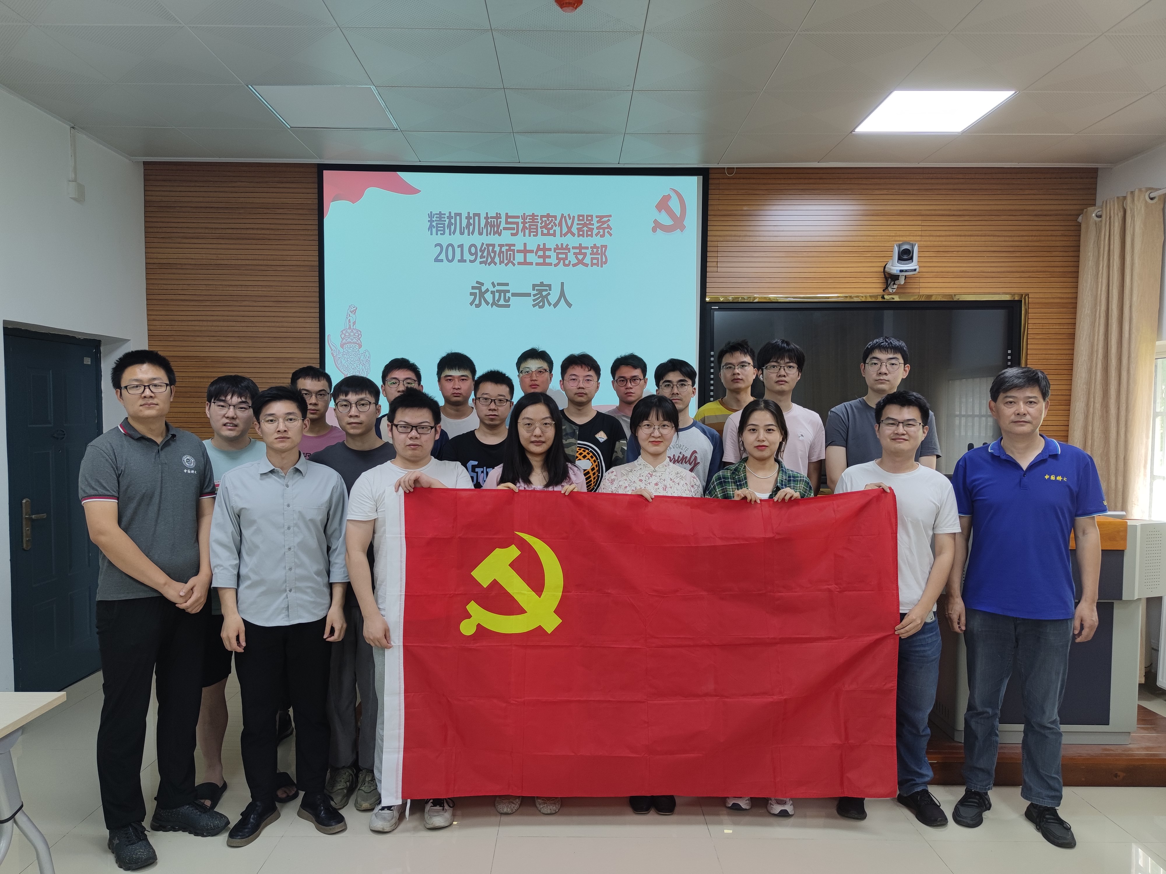 最后,全体党员合影留念。一代人有一代人的使命和担当,作为亲历“两个一百年”交汇的毕业生,作为肩负民族复兴重任的青年党员,精密机械与精密仪器系2019级硕士生党支部全体党员将牢记科大“红专并进、理实交融”的校训,践行“求真思辨、低调务实、不畏艰难、勇于攀登、爱国奉献、科教报国”的科大精神,从“毕业”这一人生新阶段新起点出发,努力成为民族复兴中的先锋力量,担当起党和人民赋予的历史重任。