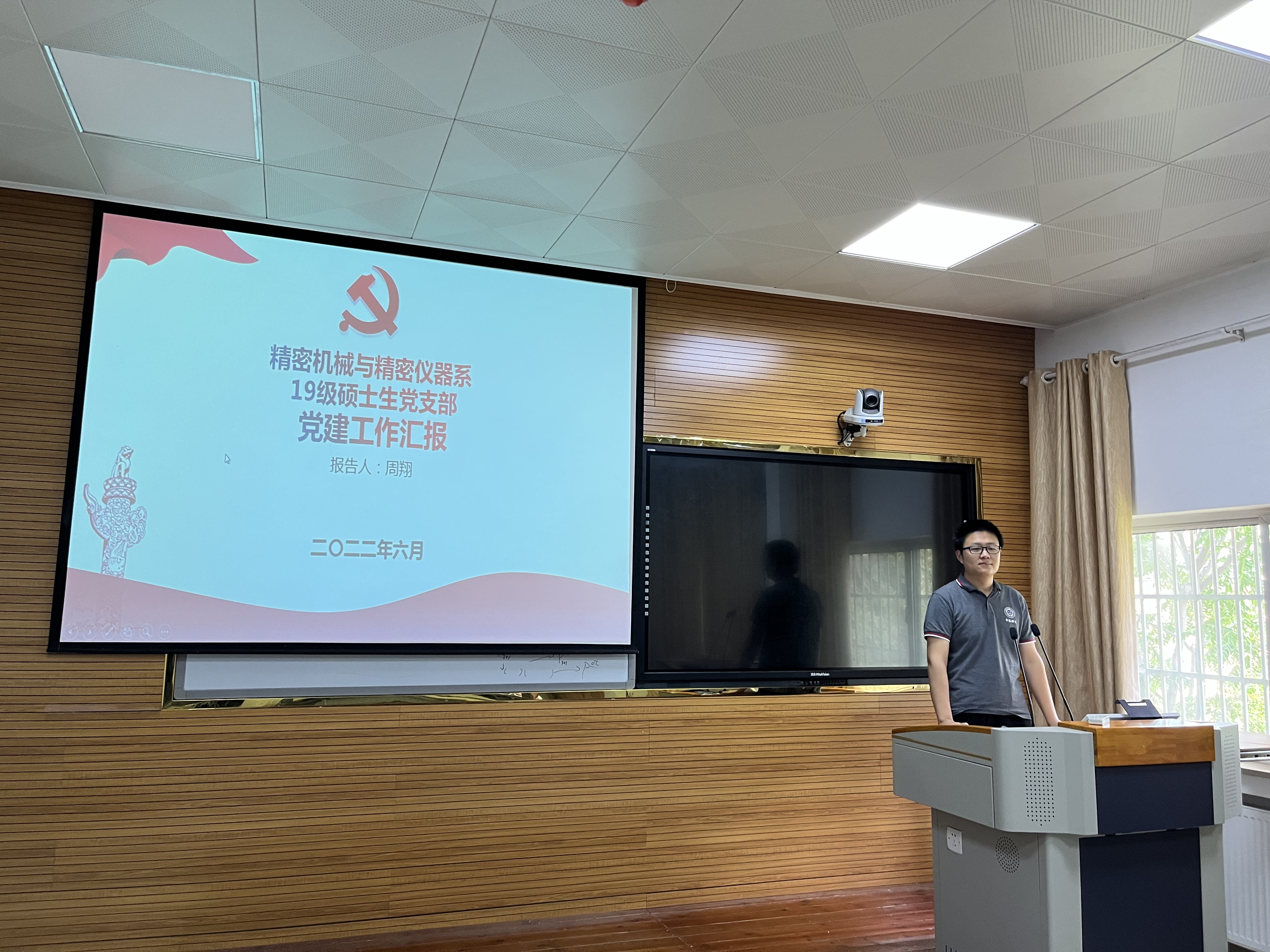 值此毕业临别之际,精密机械与精密仪器系2019级硕士生党支部于6月9日下午在力学二楼215召开了最后一次支部大会,对支部成立三年来的工作进行总结。会议由党支部书记周翔主持并做党建工作报告,系党总支书记李家文老师出席会议,院团委学生副书记张凯迪、支部全体党员参加了会议。