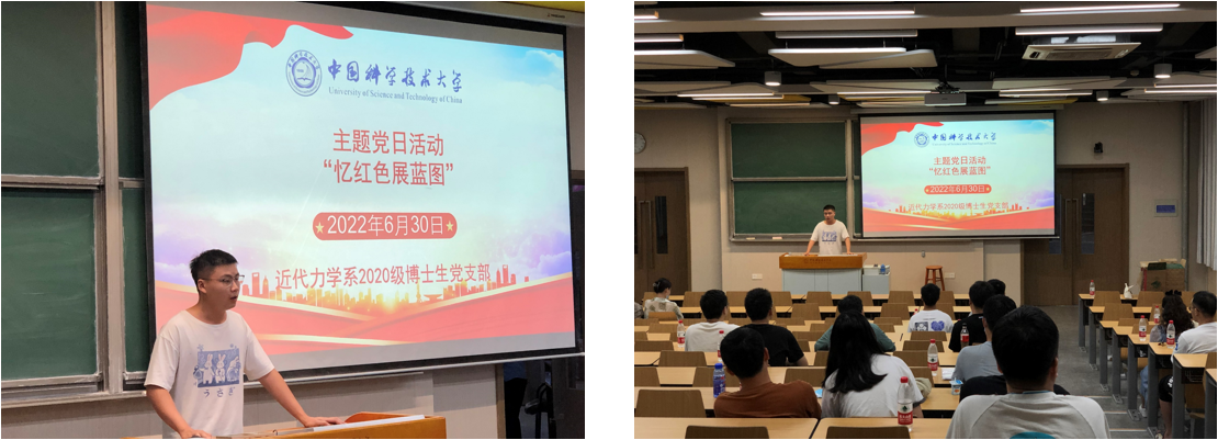 为迎接即将到来的中国共产党101岁生日,重温中国共产党成立的历史背景和创建过程,提醒党员不忘初心跟党走,砥砺奋进新征程,激发和弘扬党员坚定不移的爱国情怀和百折不挠的奋斗精神,工程科学学院近代力学系2020级博士生党支部于2022年6月30日晚,在西区第三教学楼开展了《建党伟业》主题党日观影活动。