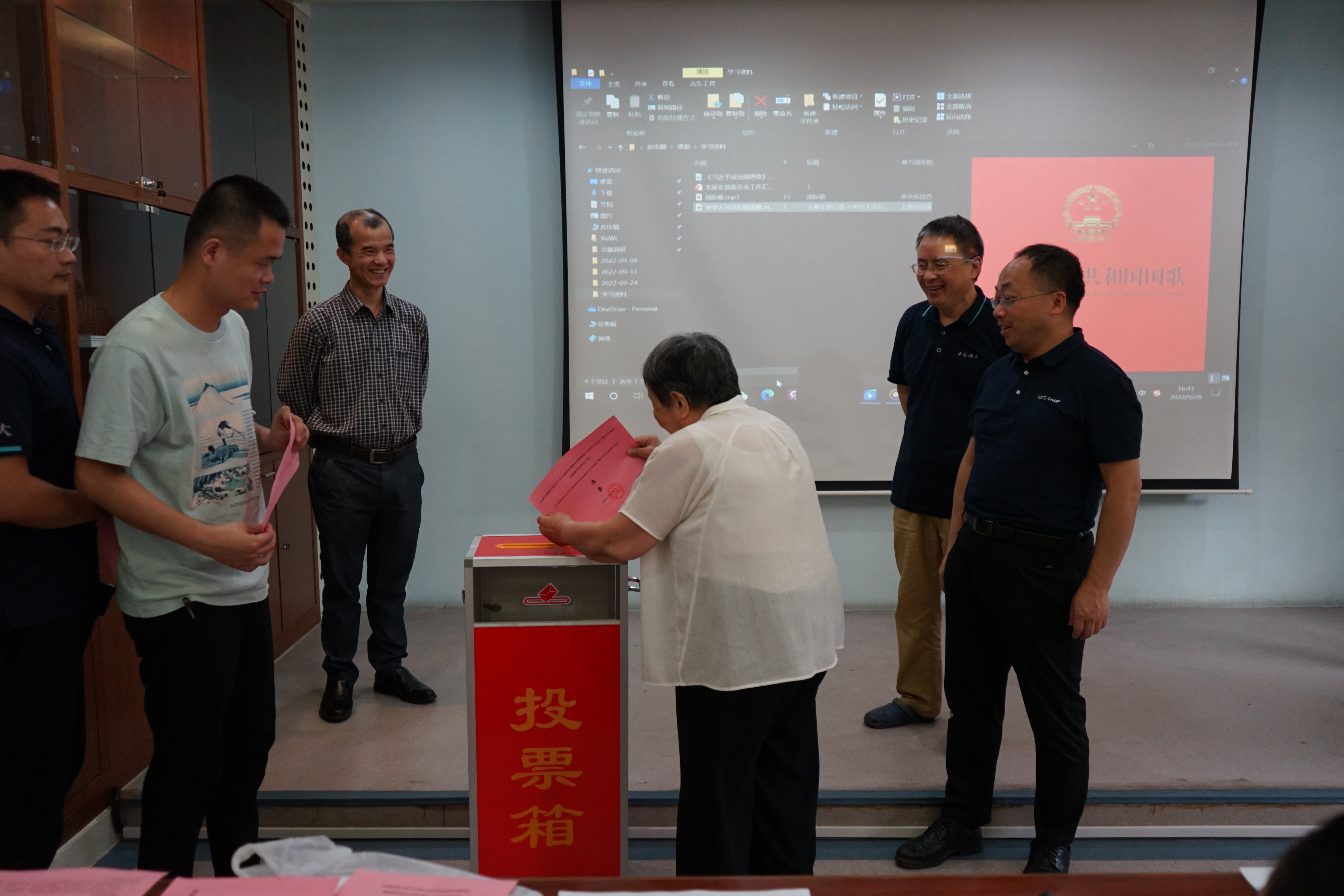 最后,在庄严的《国际歌》声中,中科院材料力学行为和设计重点实验室支部党员大会顺利完成各项换届选举议程,本次换届选举大会圆满结束。