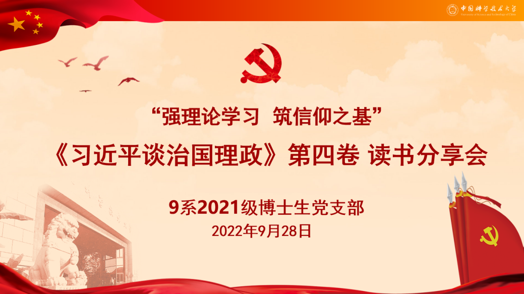9月28日,工程科学学院精密机械与精密仪器系2021级博士生党支部开展《习近平谈治国理政》第四卷学习交流活动,以深入学习理解习近平新时代中国特色社会主义思想,强化支部党员理论基础。支部党员、入党积极分子及团支部团员参加了活动。