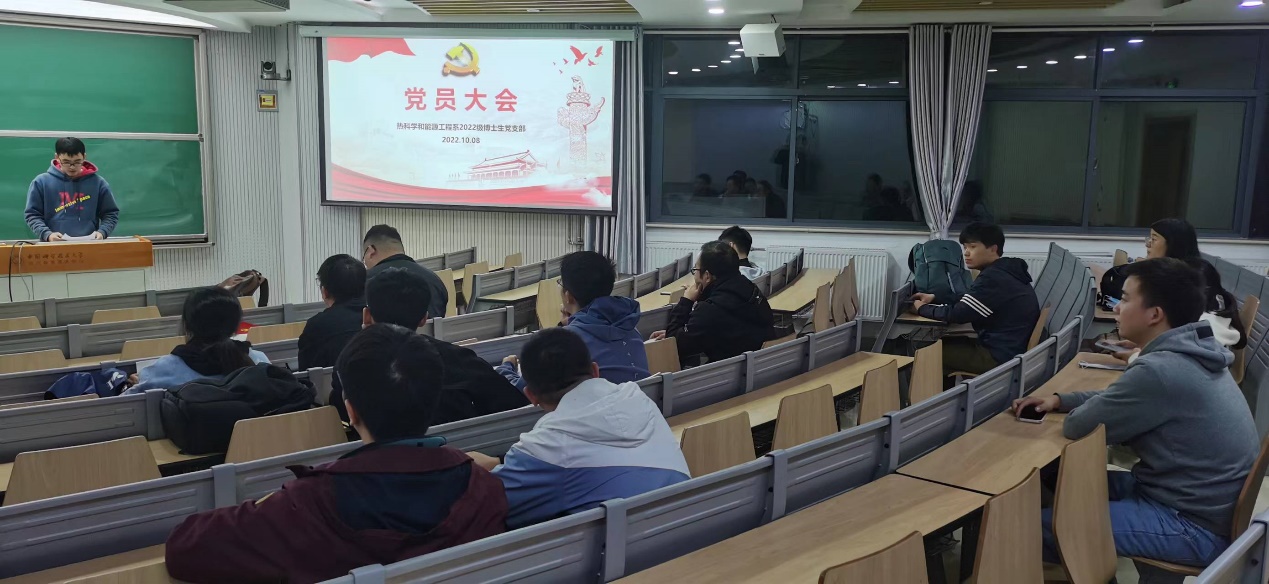 10月8日晚,热科学和能源工程系2022级博士生党支部在3A112召开党员大会暨“学深悟透《习近平谈治国理政》第四卷 以实际行动迎接党的二十大胜利召开”主题党日活动,支部正式党员和预备党员出席了本次会议。