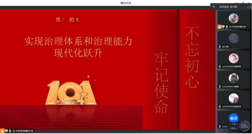 为深入学习贯彻党的二十大精神,进一步提高党员同志的理论素养和政治觉悟,10月23日,精密机械与精密仪器系2022级硕士班党支部线上召开支部大会,以“强国复兴有我”为主题,传达学习党的二十大精神。支部全体党员积极参与了本次学习,会议由党支部书记金子彤主持。