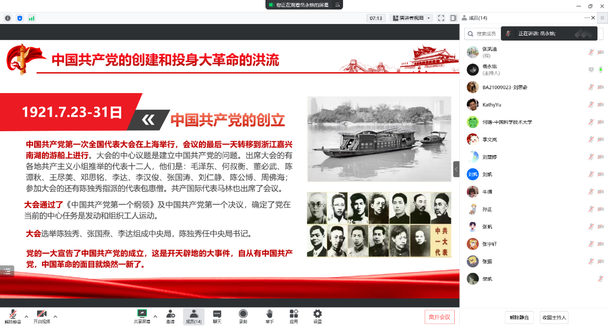 2022年12月30日下午,精密机械与精密仪器系2021级博士生党支部以党史学习季之“开天辟地”为主题开展了党史学习教育主题党日活动。党支部组织“党史学习季”系列活动,旨在系统化加强支部党员党史学习教育,做到汲古学新,知史爱党。首期活动线上开展,支部全体同志参加活动。