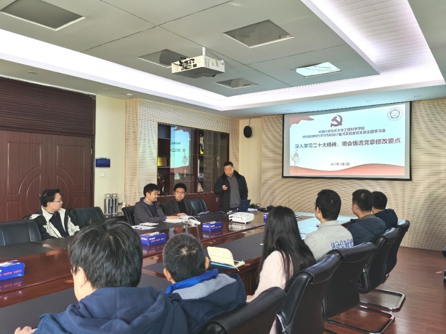 党支部副书记倪向贵首先带领大家集体深入学习党的二十大精神,领会悟透党章的修改要点,希望大家要学深悟透党的二十大精神,加强党性修养,严格按照党章要求办事,做一名合格的共产党员。