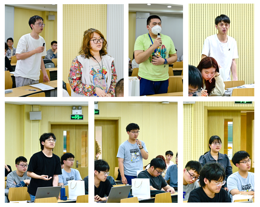 每位优秀师兄师姐分享结束后,都有很多本科生踊跃交流。大家就竞赛与大创、科研与工作、出国与本校保研、实验室选择、硕转博准备等多个方面进行了提问,三位优秀师兄师姐结合自己的经历耐心地给予了解答。师兄师姐鼓励大家遵从内心,选择自己喜欢的人生道路;多去不同实验室体验,积极探索感兴趣的研究方向;主动与师兄师姐老师交流,积极学习理论和实验技能;结合自身情况和兴趣适当参加竞赛和大创,积累实践经验。