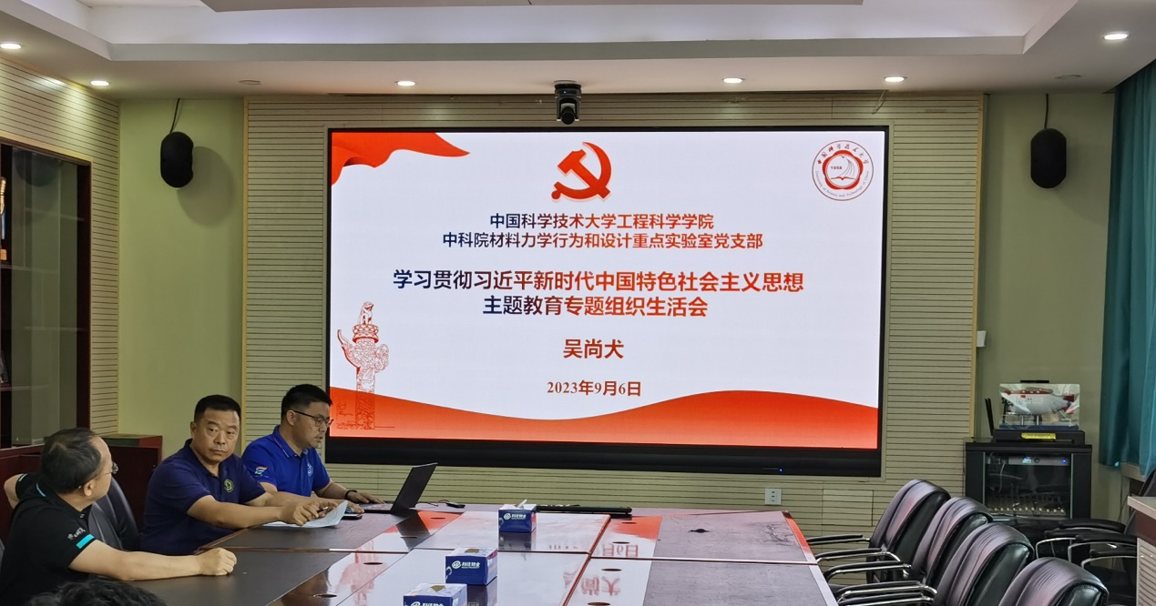 9月6日下午,中科院材料力学行为和设计重点实验室党支部召开“学习贯彻习近平新时代中国特色社会主义思想” 主题教育专题组织生活会。重点实验室党支部副书记倪向贵主持会议,支部全体党员参加了会议。工程科学学院执行院长吴恒安、副院长倪勇以普通党员身份参加了此次专题组织生活会。