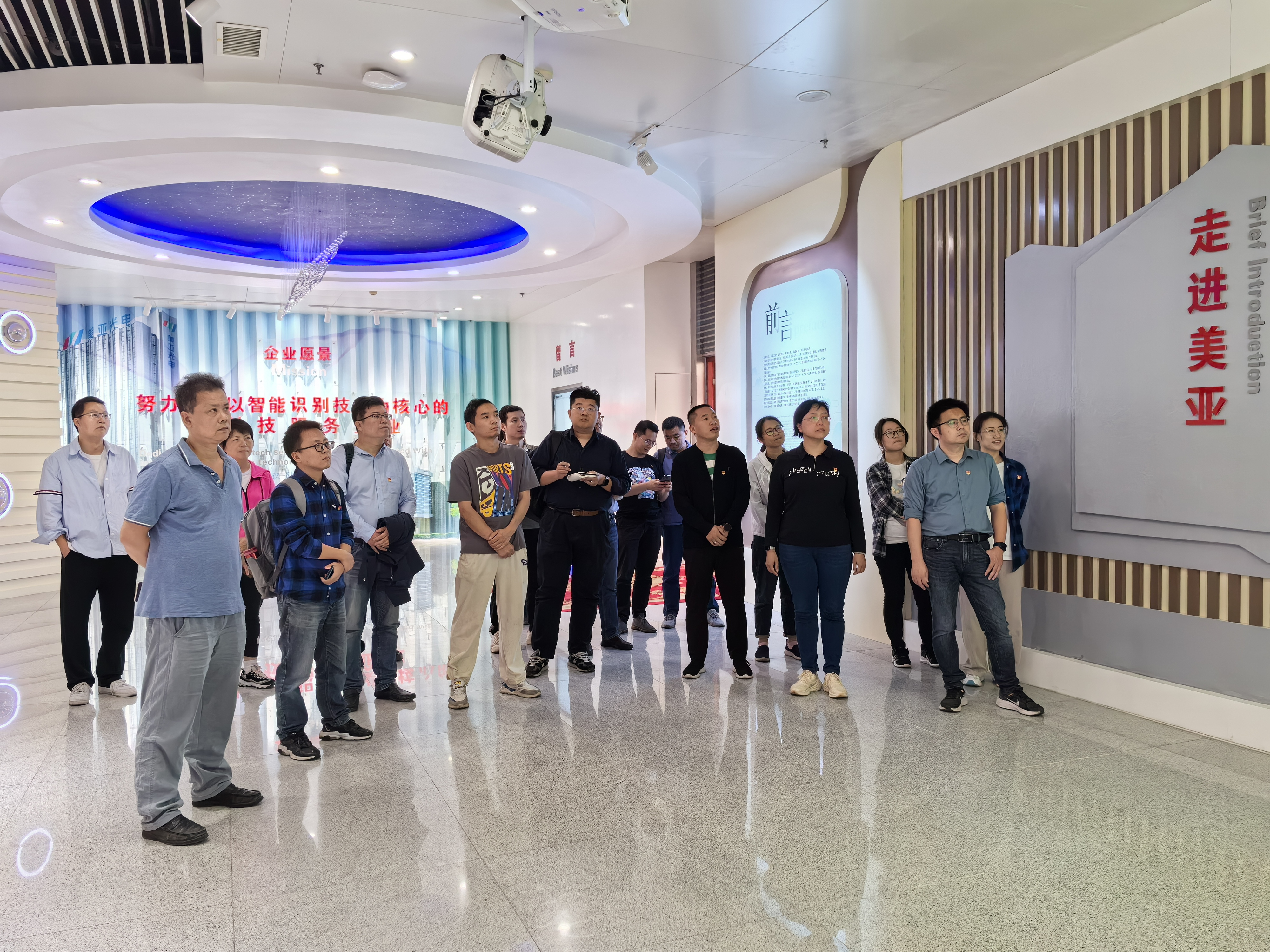大家首先来到合肥美亚光电技术股份有限公司(以下简称“美亚光电”)展厅,听取了美亚光电讲解员的讲解,认真观看了美亚智能色选机、口腔CBCT、脊柱外科手术导航等产品及美亚智联工业互联网平台的演示。美亚光电作为国内色选机行业龙头,是一家专注于光电智能识别装备研发制造的国家重点高新技术企业,公司高度重视科技创新,聚焦食品安全、医疗健康、再生资源等三大业务板块,先后承担国家重大科学仪器设备开发专项、国家863计划、国家重点研发计划等科技项目,与重点实验室光测力学、机器人等团队的研究方向有许多可以合作的契合点。美亚光电党委副书记吕春锦陪同大家参观调研。