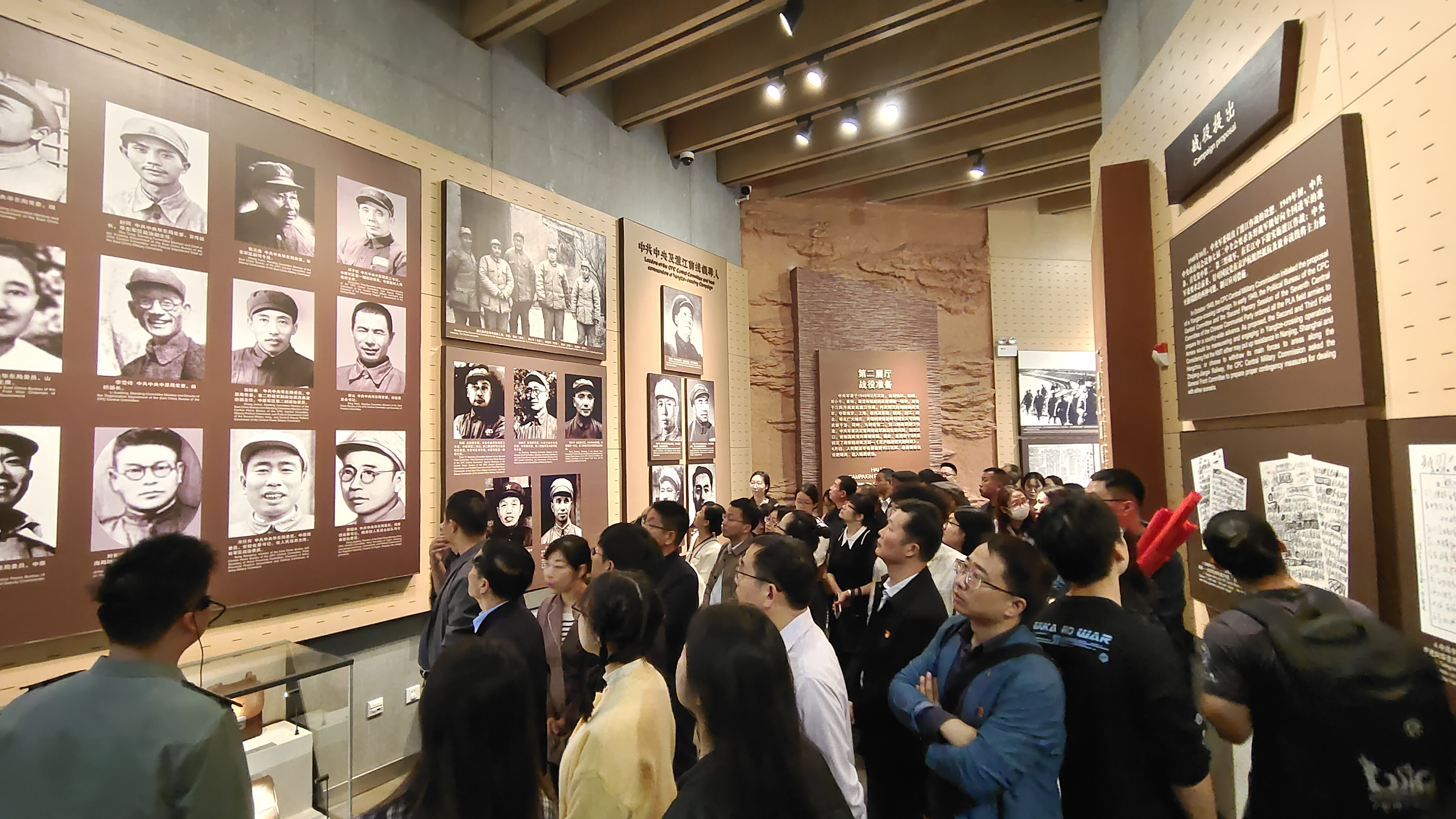 活动的第一站,大家来到了渡江战役纪念馆。进入展馆内,大家跟随着历史的脚步,从“运筹帷幄,坚决‘打过长江去’”,看到“百万雄师过大江”,再看到“见证革命胜利”。大家不仅参观了各阶段的历史人物事件以及相关文物,还了解了渡江战役前后国内外形势和战争战略部署,感受到战争形势下军民同心奋勇向前的光辉历史场景。